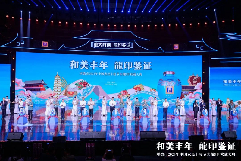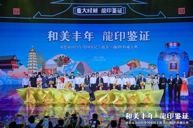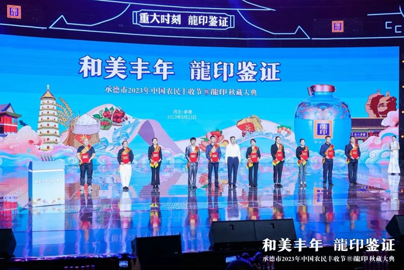 禮贊豐收年,共品龍印酒。9月23日,由承德市人民政府、河北廣播電視臺(集團)聯合主辦;由承德縣人民政府、承德市農業(yè)農村局、承德市體育局協辦;由承德縣農業(yè)農村局、河北板城酒業(yè)、河北廣電廣告有限責任公司承辦的承德市2023年中國農民豐收節(jié)暨龍印秋藏大典在承德市奧體中心圓滿落下帷幕。板城酒業(yè)駕起卓越追求的時代巨輪,乘歷史文脈之槳,掌匠心傳承之舵,揚帆起航,再次譜寫龍印“秋藏大典”品牌文化IP的時代篇章。