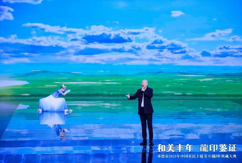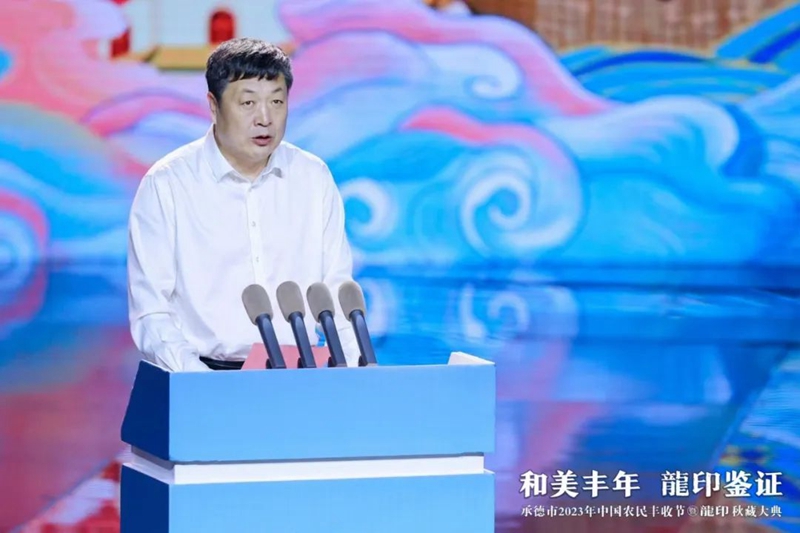 整場慶典以記錄承德人民美好生活、美景美食、農業(yè)碩果的視頻《承德十二時辰》拉開帷幕。承德市人民政府副市長崔萬峰率先上臺致辭,并對承德市2023年中國農民豐收節(jié)暨龍印秋藏大典的召開表示熱烈祝賀。