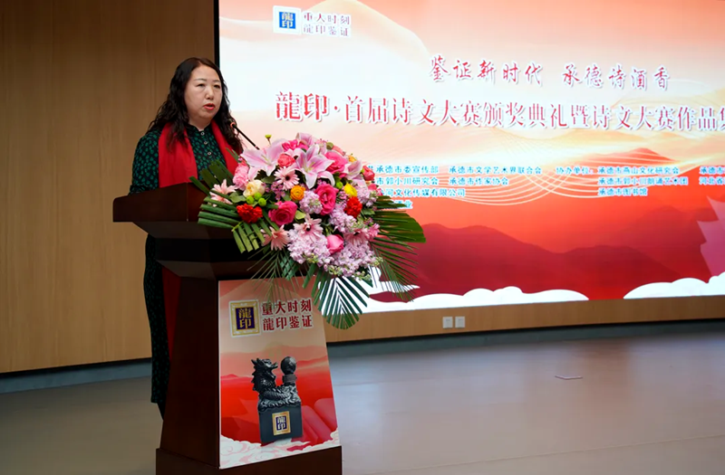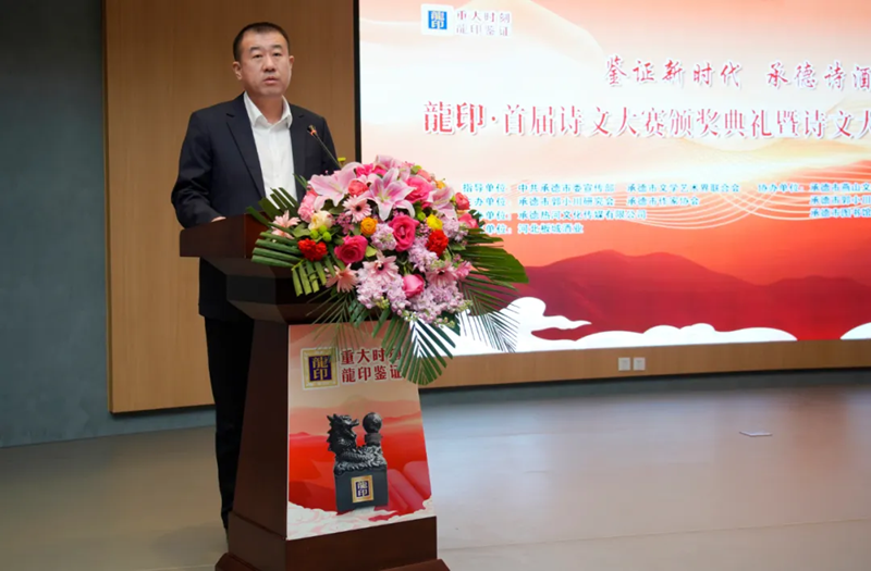 承德市郭小川研究會會長步九江發(fā)表致辭,“鑒證新時代 承德詩酒香——龍印·首屆詩文大賽”這場活動參與人員之多,高手云集之密,采訪挖掘之深,作品質量之高,在承德文學史上尚屬首次。