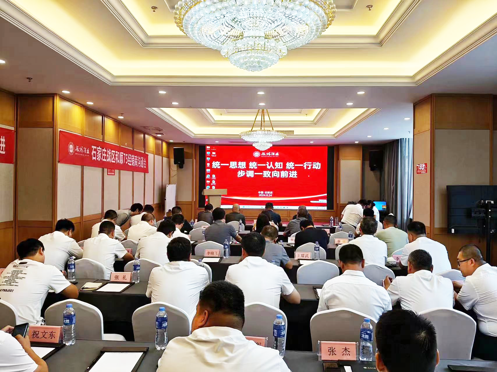 板城酒業(yè)石家莊戰(zhàn)區(qū)和順部銷售總監(jiān)王小會(huì)、石家莊中部戰(zhàn)區(qū)和順部區(qū)域經(jīng)理陳強(qiáng)、石家莊北部戰(zhàn)區(qū)和順部區(qū)域經(jīng)理?xiàng)罱?、石家莊南部戰(zhàn)區(qū)區(qū)域經(jīng)理段紅偉與業(yè)務(wù)團(tuán)隊(duì)以及經(jīng)銷商代表出席本次會(huì)議。在會(huì)上,大家圍繞公司戰(zhàn)略落地、廠商思想統(tǒng)一、銷售模式創(chuàng)新等關(guān)鍵議題展開了深入交流與探討,共同為區(qū)域市場(chǎng)的繁榮發(fā)展獻(xiàn)計(jì)獻(xiàn)策。