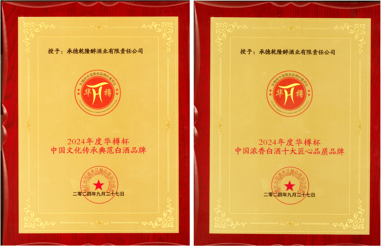 板城酒業(yè)憑借過硬的綜合實力得到行業(yè)肯定及評審專家的認可,經中國酒類流通協會“華樽杯”第十六屆中國酒類品牌價值評議組委會評測,承德乾隆醉酒業(yè)有限責任公司(板城酒業(yè))2024年度的品牌價值為449.82億元,中國白酒行業(yè)排名三十位,同時,榮獲“2024年度華樽杯中國濃香白酒十大匠心品質品牌”、“2024年度華樽杯中國文化傳承典范白酒品牌”獎項,充分彰顯了冀酒的品質自信,也傳遞出行業(yè)、社會對板城酒業(yè)品牌文化的高度認可。