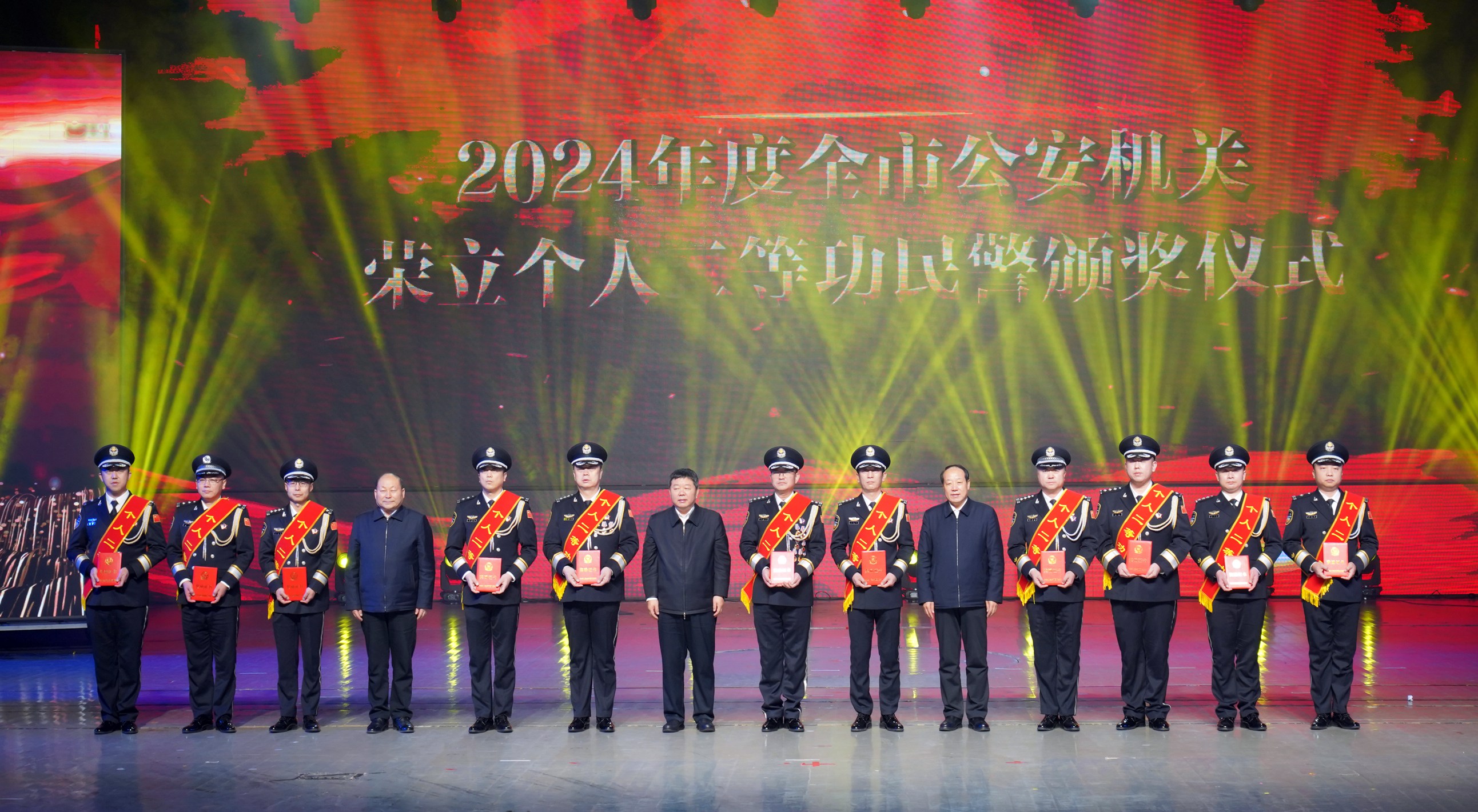 市委副書(shū)記、市長(zhǎng)王亞軍,市人大常委會(huì)主任劉文勤,市政協(xié)主席吳清海,為榮立個(gè)人二等功民警頒獎(jiǎng)