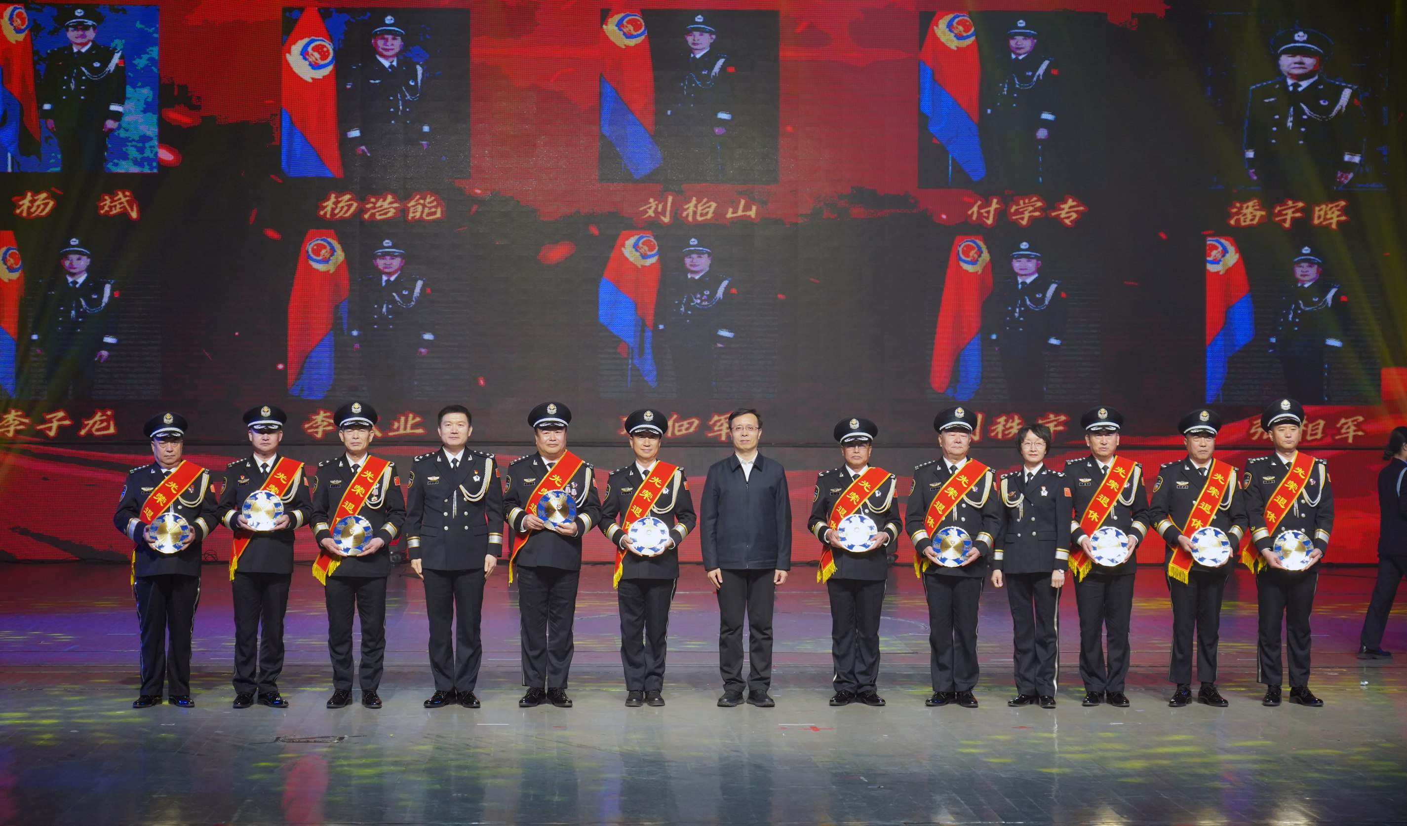 市委常委、政法委書(shū)記李曉波,省公安廳二級(jí)巡視員賈永華,市政府副市長(zhǎng)、市公安局黨委書(shū)記、局長(zhǎng)康海潮為退休民警頒發(fā)退休紀(jì)念盤(pán)