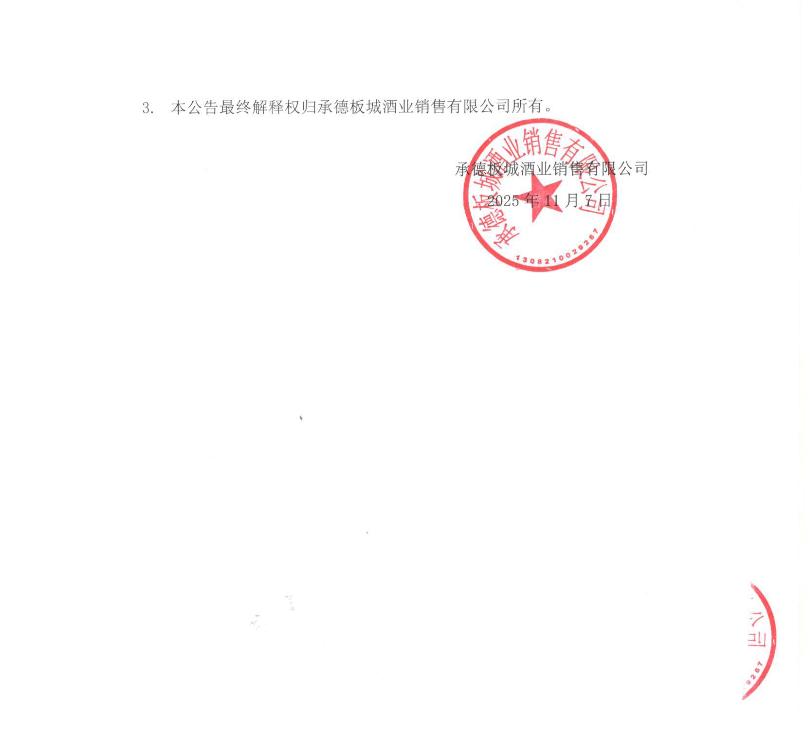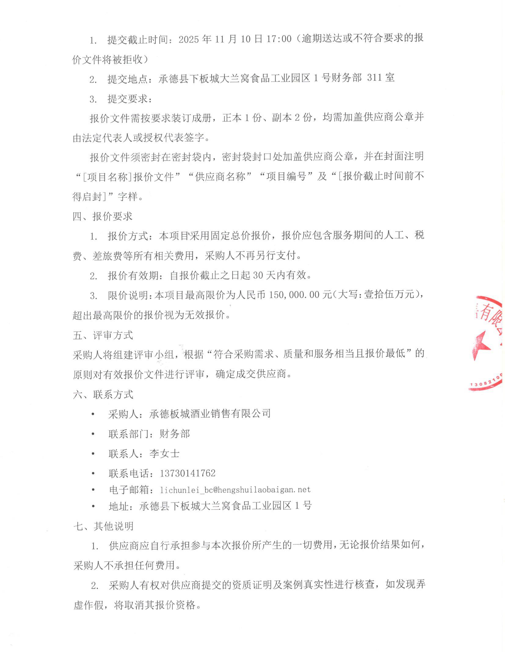承德板城酒業(yè)銷售有限公司一般稅務咨詢服務項目密封報價公告